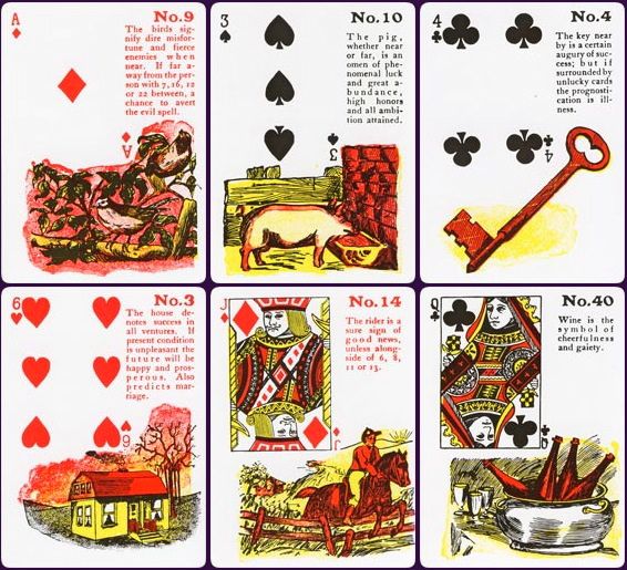 聽名字真囧……看牌面根本就是和平時打的撲克牌沒有區別!確實,這副牌就是用來打的,但與真正的撲克牌不同的是,它在牌面的右下角附有一拉斯脫和文字解釋,而這些無論是展現場景還是描述物品,的的確確是用來算命的。